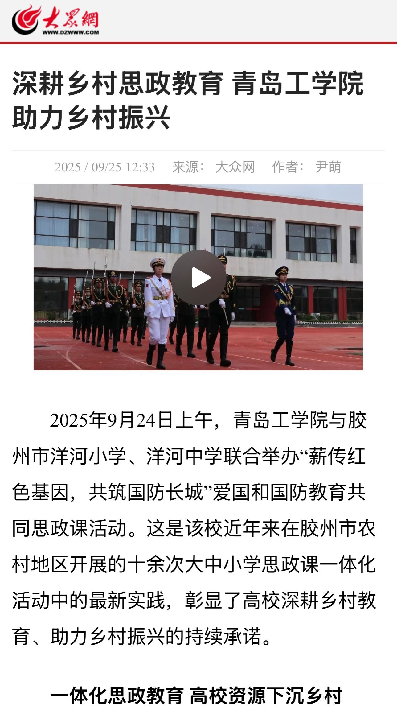 《大众网》深耕乡村思政教育 青岛工学院助力乡村振兴
