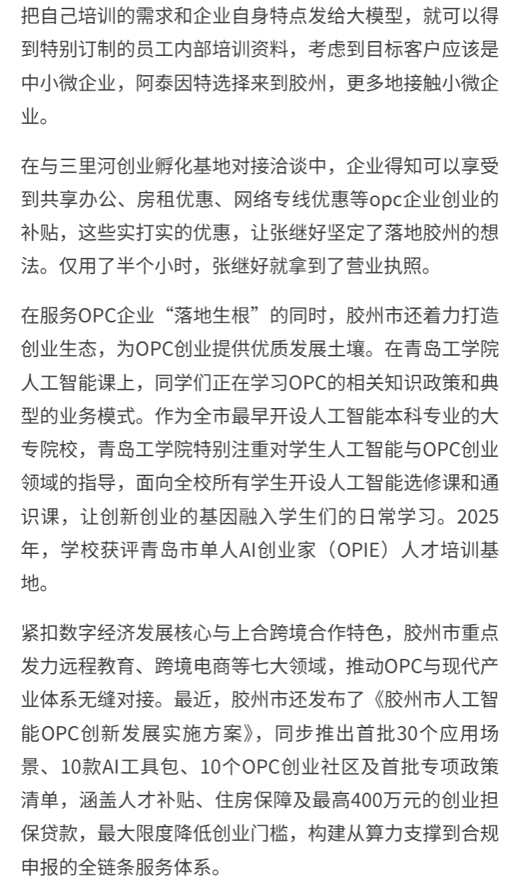 《蓝睛》丨 开局“十五五” 奋斗正当时· 干事创业 担当尽责丨胶州市:做强创业生态 护航OPC单人成军