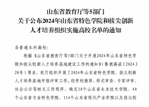 近日,山东省教育厅等5 部门联合发布《关于公布 2024 年山东省特色学院和拔尖创新人才培养组织实施高校名单的通知》(鲁教高函〔2024〕28号),学校申报的海尔 “衣联网” 现代产业学院与跨境电商现代产业学院双双获批,这一成果标志着青岛工学院在服务区域经济发展、深化产教融合的征程中迈出了极为坚实的一步。