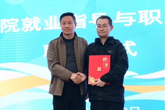 开幕式仪式环节,副校长李伟代表学校为北京万学教育集团副总裁曾劲颁发“就业指导与职业规划导师”聘书,为大赛引入专业指导力量。
