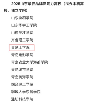 近日,山东省互联网传媒集团大众网·海报新闻正式发布2025年度山东高校系列榜单。青岛工学院获评“2025山东最佳品牌影响力高校”荣誉称号。