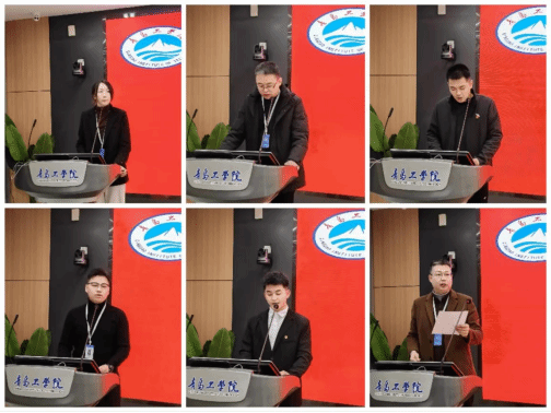 监考教师代表、经济管理学院韩自强老师郑重承诺,将从命题、监考到评卷全程严格履职,确保考试公平。他提出“严把三关”:一是科学命题杜绝泄题风险;二是考场精准识别作弊行为并体现人文关怀;三是规范阅卷归档保障信度。学生代表、设计艺术与传媒学院季鑫祥表达了诚信考试的决心,并代表学生宣读了《诚信考试承诺书》,倡议全体同学端正备考态度、珍视个人信誉、勇于互相监督,摒弃侥幸心理,用真实水平接受检验。承诺书内容包括遵守考场规则、杜绝作弊、自愿接受违纪处分等,彰显了学生群体的诚信担当。