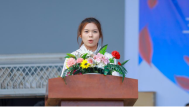 经济管理学院学生倪佳丽和通识教育学院教师王从泽分别代表全体运动员、裁判员庄严宣誓,承诺以拼搏进取的精神和公平公正的态度参与赛事,严守赛规、恪尽职守,以昂扬斗志和坚韧品格投身比赛。