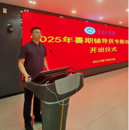 辅导员代表、马克思主义学院张书玮发言表示,全体辅导员将以饱满热情投入培训,勤学善思、务求实效,把所学转化为服务学生成长的能力,为学校育人事业贡献力量。随后,学生工作部部长王涛详细解读了《2025年暑期辅导员专题培训培训方案》,强调本次培训以“政治引领、专业赋能、实践淬炼、情感凝聚”四位一体体系为核心,旨在锻造“政治强、业务精、纪律严、作风正”的高水平队伍。