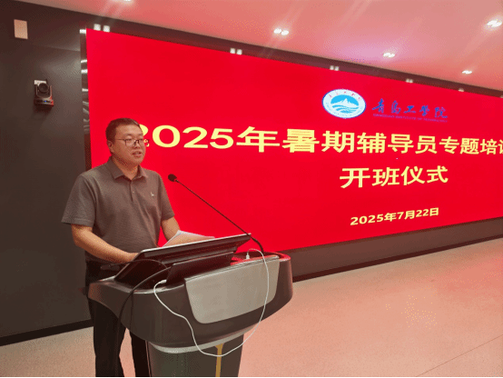 为深入贯彻党的二十大精神与习近平总书记关于教育的重要论述,全面落实《高等学校辅导员职业能力标准》,切实加强辅导员队伍专业化、职业化、专家化建设,7月 22日上午,青岛工学院2025年暑期辅导员专题培训班开班仪式在4315学术报告厅举行。校长刘连新、学生工作部、各二级学院党总支副书记及全体辅导员参会,仪式由党委副书记兼纪委书记邢林主持。
