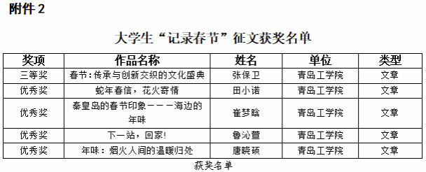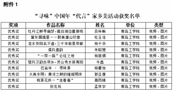 近日,山东省社会科学界联合会下发了《关于“寻味中国年”大学生作品征集竞赛获奖情况的通报》,青岛工学院在此次竞赛中成绩斐然,共荣获1个三等奖、14个优秀奖。