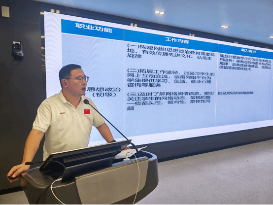 学生工作部部长王涛系统阐述了学校文件,包括《辅导员队伍建设实施办法》《辅导员工作考核实施办法》和《新时代劳动教育实施方案》等六份制度。他从辅导员配备选聘、九大职责、学生劳动教育管理、大一学生贯通式教育及舍长选拔等维度入手,强调政策落地的操作性。他强调:“这些文件是学校落实立德树人的关键抓手,辅导员需增强责任感与紧迫感,聚焦主责主业,向专业化、职业化、专家化迈进。”