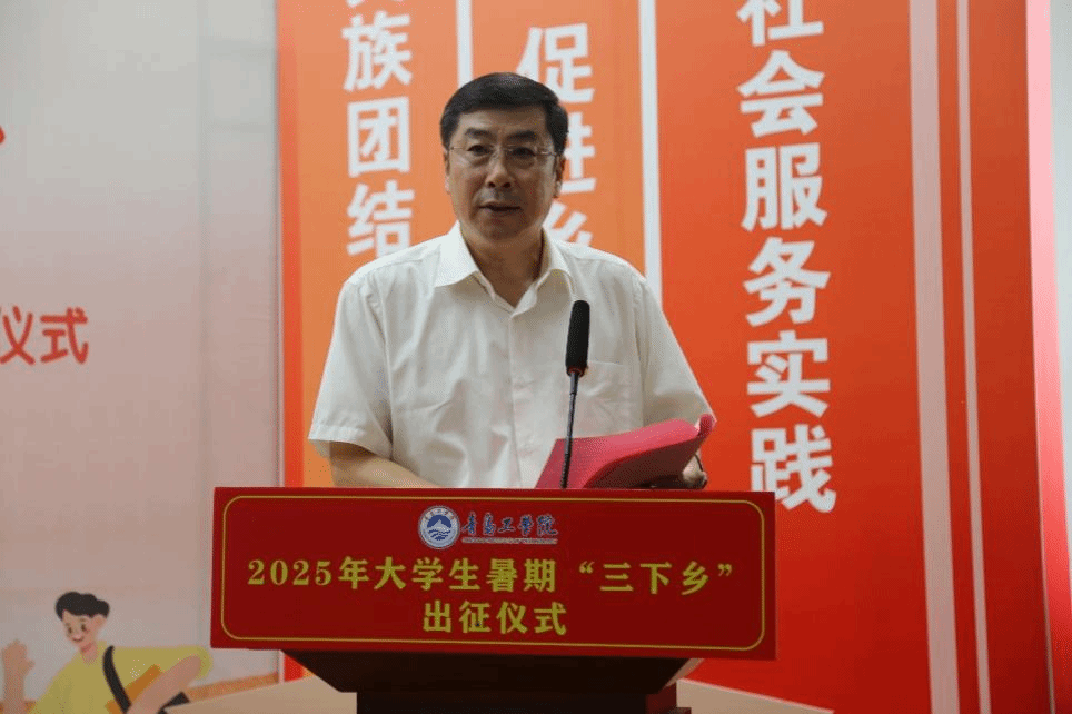 7月11日下午,青岛工学院2025年大学生暑期“三下乡”社会实践暨2025上海合作组织国际投资贸易博览会志愿服务出征仪式在2105隆重举行。校党委书记周有波、党委副书记邢林、学生工作部部长王涛、学生工作副部长戎堃、各二级学院党总支副书记、团总支书记、2025年“三下乡”社会实践队伍指导老师以及全体队员出席本次仪式。仪式由信息工程学院团总支书记荆文文主持。