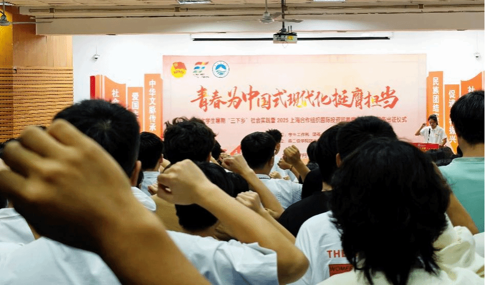 青年志愿者协会会长王雅坤带领2025年全体“三下乡”社会实践活动队员庄严宣誓。