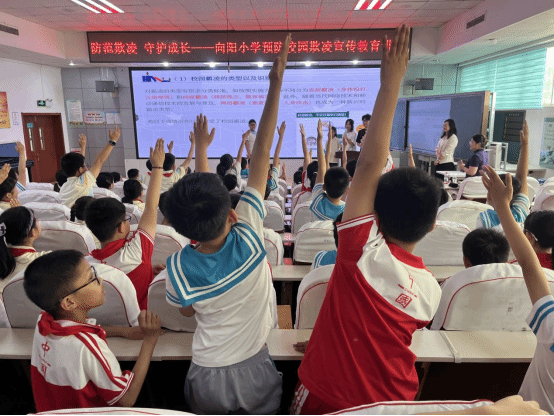 讲座中,刘蕾副教授结合校园欺凌、隐私保护等热点问题,通过“被起侮辱性绰号如何维权”等真实案例,系统解读《民法典》中未成年人保护相关规定。她以高校学者的专业视角,深入浅出地剖析法律逻辑,引导学生识别校园欺凌的隐蔽形态,明确自身权利边界。知识产权专业学生则以“小讲师”身份,通过趣味问答、知识竞猜等形式强化学生记忆,形成“教授主导、学生辅助”的立体化普法模式,让法治教育既具专业性又富亲和力。