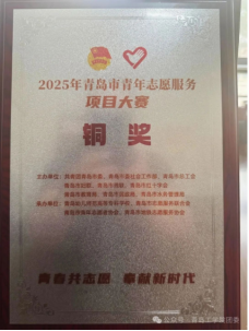 近日,由共青团青岛市委、青岛市委社会工作部、青岛市总工会等单位主办的2025年青岛市青年志愿服务项目大赛终评路演答辩圆满落幕。经过激烈角逐,我校《万名团员进社区 服务上合促发展——基层社区治理志愿服务项目》荣获铜奖!