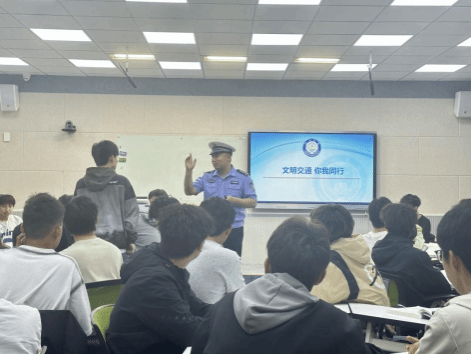 讲座中,胶州市交警大队王警官对各类交通法规进行了详细的解读,阐释了基本的信号灯规则、车道行驶规定、道路标线含义等,并针对实际生活中发生的交通案例阐明骑电动车过程中应当注意的问题,如应当正确佩戴头盔、注意大车转弯中产生的内轮差、防止“开门杀”等。王警官还着重强调了良好出行习惯对预防事故的重要性,详细介绍了步行、骑行、驾车等不同出行方式下的安全习惯及特殊天气下的驾驶技巧。讲座期间,对于同学们提出的与日常交通安全紧密相关的问题,王警官给予了专业、详细的解答,使同学对交通安全知识有了更深入地理解。
