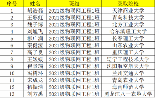 这个班取得这么好的成绩是意料之中的,只能说明每一位同学的辛勤付出得到了应有的回报。那些挑灯夜读的日子,那些面对难题不言放弃的身影,都是你们青春最美的注脚。希望你们在未来的研究生涯中能够始终保持对科学的热爱及对未知的好奇心,用严谨的态度钻研每一个问题,用创新的思维去解决每一次挑战。愿你们能够发现新知识,创造新价值,为国家的建设和发展贡献自己的力量!——物联网工程专业负责人 赵静