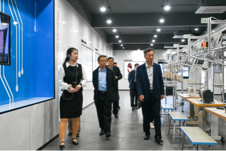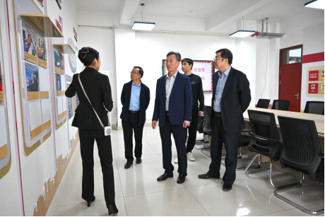 4月25日,省教育厅民办教育与继续教育处一级调研员宋宪亮一行三人莅临我校开展调研并进行座谈交流。董事长李正阳、党委书记周有波、校长刘连新等领导热情接待了调研组一行,并全程陪同参观了美育中心、青岛市工业互联网软件应用型人才培养基地、胶州社会工作学院、虚拟仿真实验室、机电工程学院实训中心、学生公寓和新建教学实验楼,深入了解学校在美育教育、人才培养、实训实践、社会服务和信息化建设等方面的特色成果。