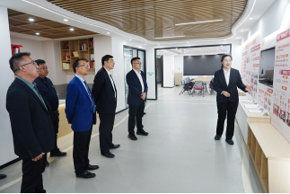 与会领导在国网胶州市供电公司5楼观摩“胶心润合”融享家园党员活动阵地,了解了公司发展状况以及党建品牌创建工作。
