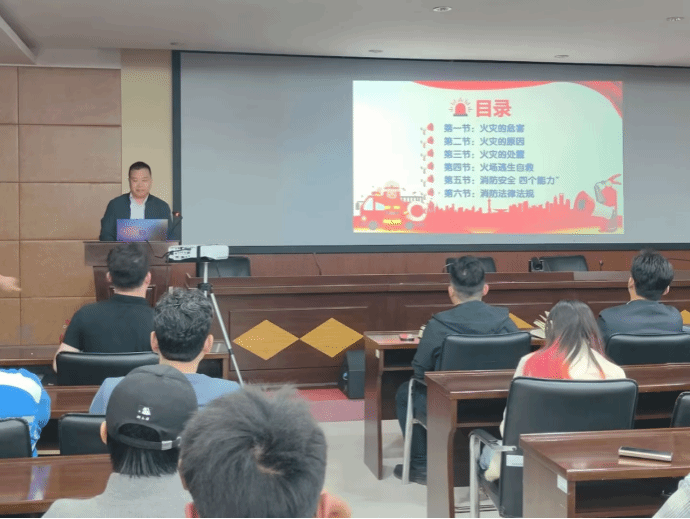 安全管理处王刚进行消防安全培训,他采用“理论讲解+实操演示”方式,结合高校火灾事故典型案例,深入浅出地为大家讲解了用电安全、火源管理以及疏散逃生的关键要点,并现场演示了灭火器的正确使用方法,让与会人员直观感受到消防安全的重要性,进一步树立了“安全第一、预防为主”的牢固观念。